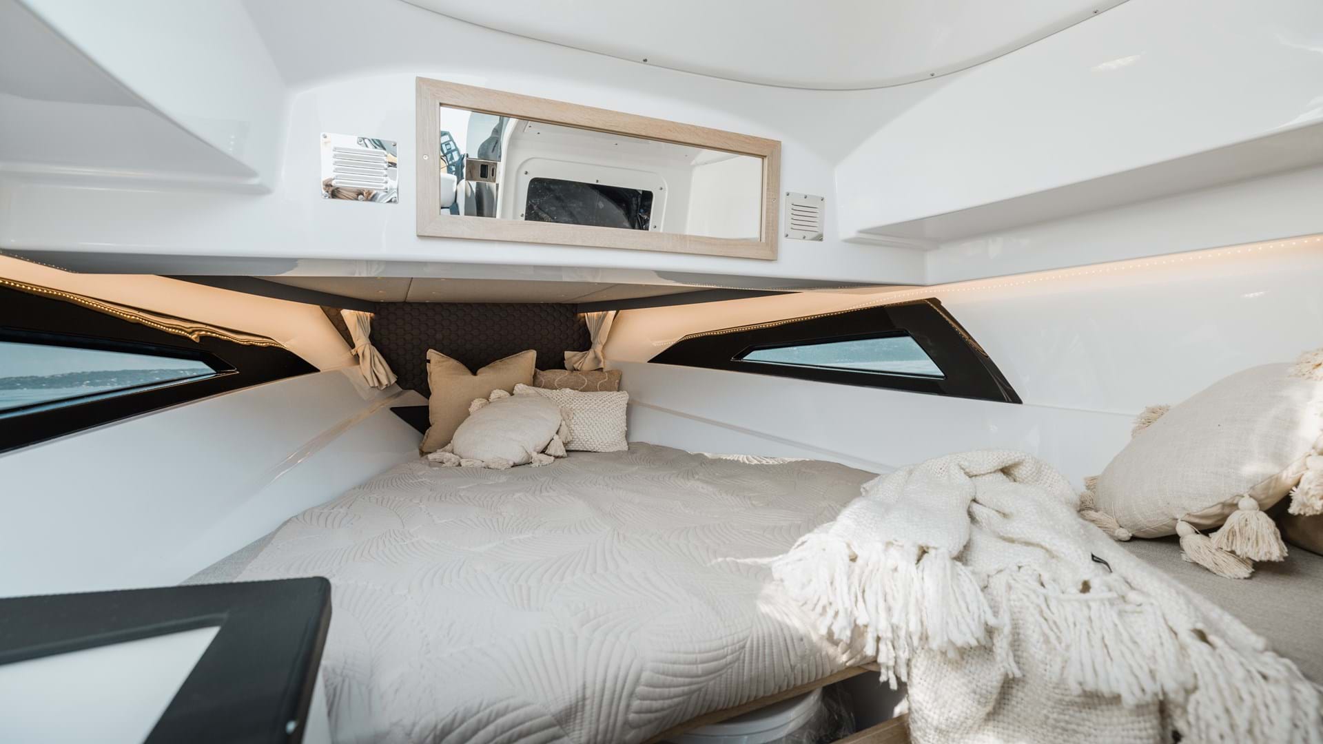 - Is the boat equipped with a mini cabin/cuddy cabin or a cabin? This is a great spot for storing bags. It helps to keep the deck neat and tidy throughout the entire journey.