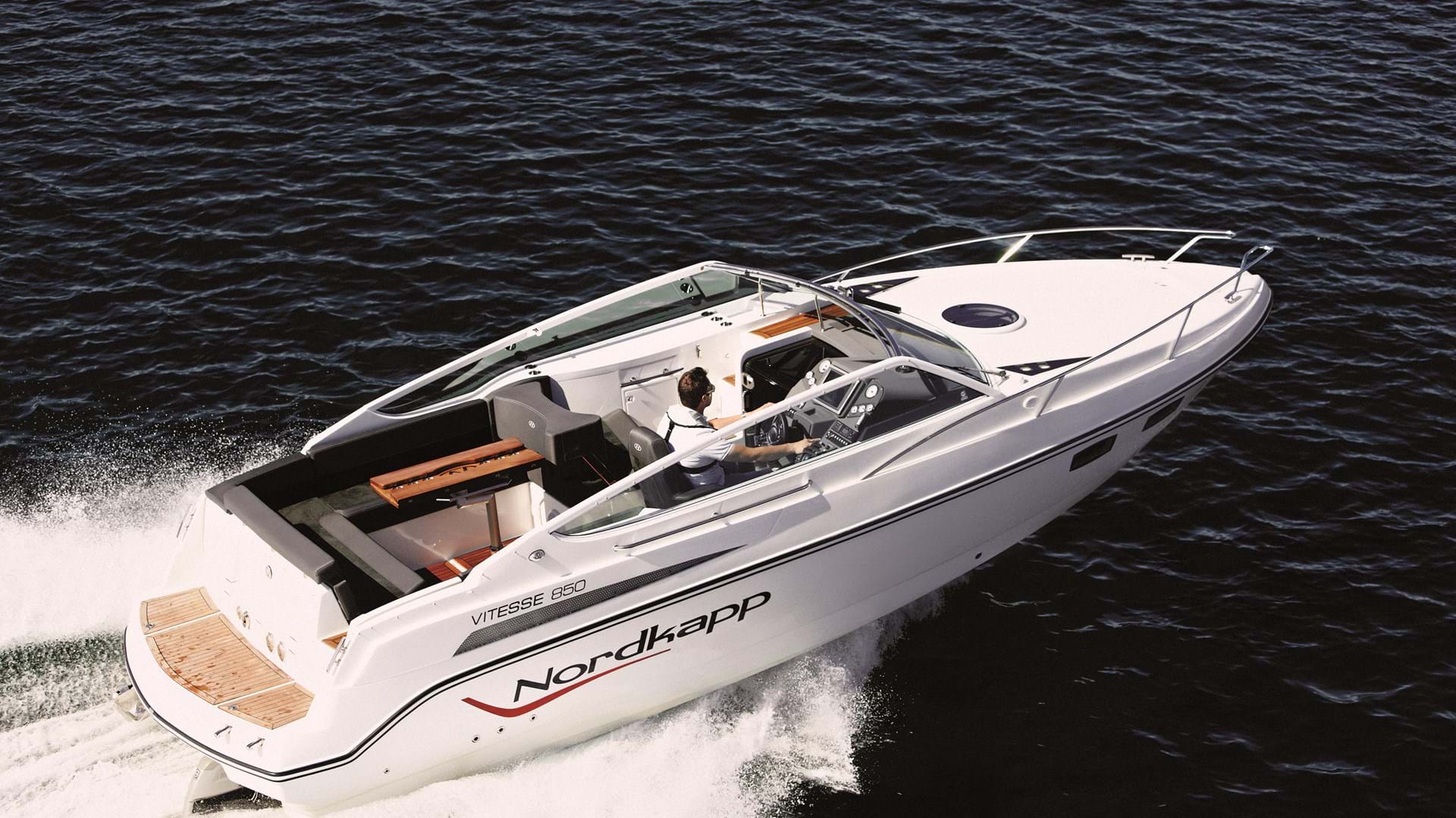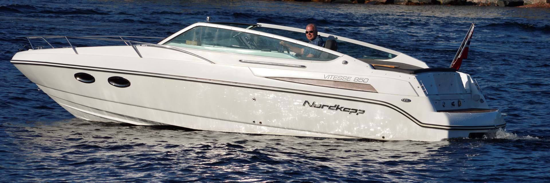 The Vitesse 850 is an 8-metre daycruiser that became Nordkapp's flagship model during the 2000s. It was an expansion of the predecessor Vitesse 830, which had an inboard Volvo Penta engine. However, as Volvo created a heavier engine, the boat needed a new hull to handle the extra weight. Along with a facelift, the Vitesse 850 was born.