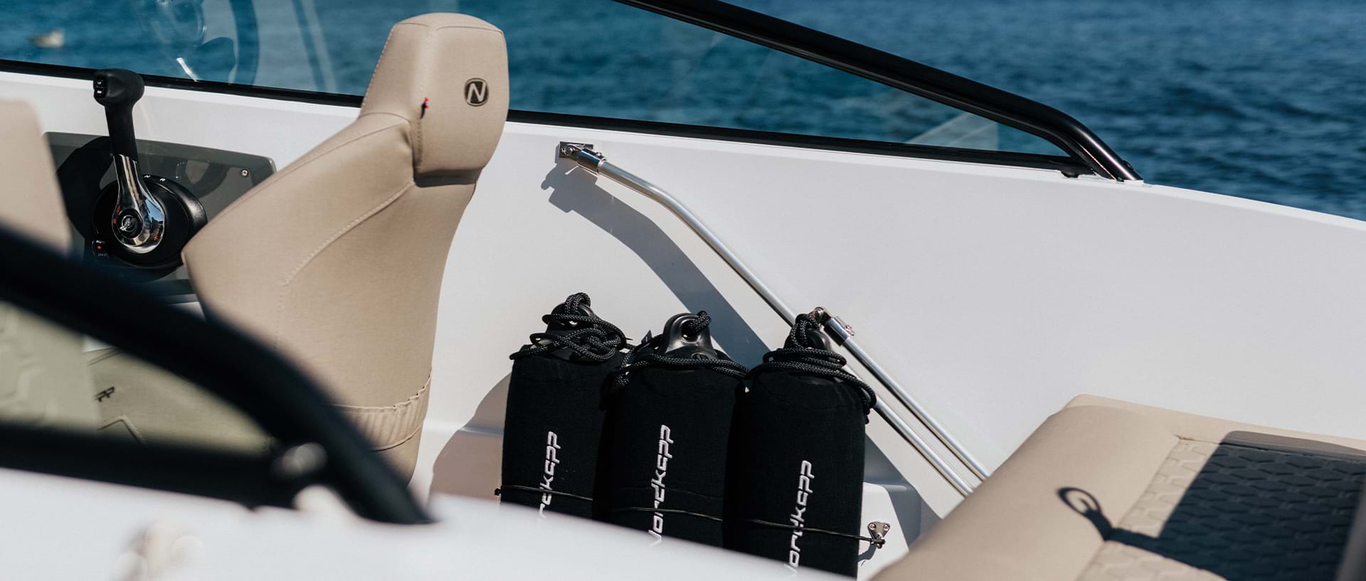Includes: 4 pcs. of mooring lines (6m), 4 fenders incl. cover and rope, anchor incl. rope (35m)