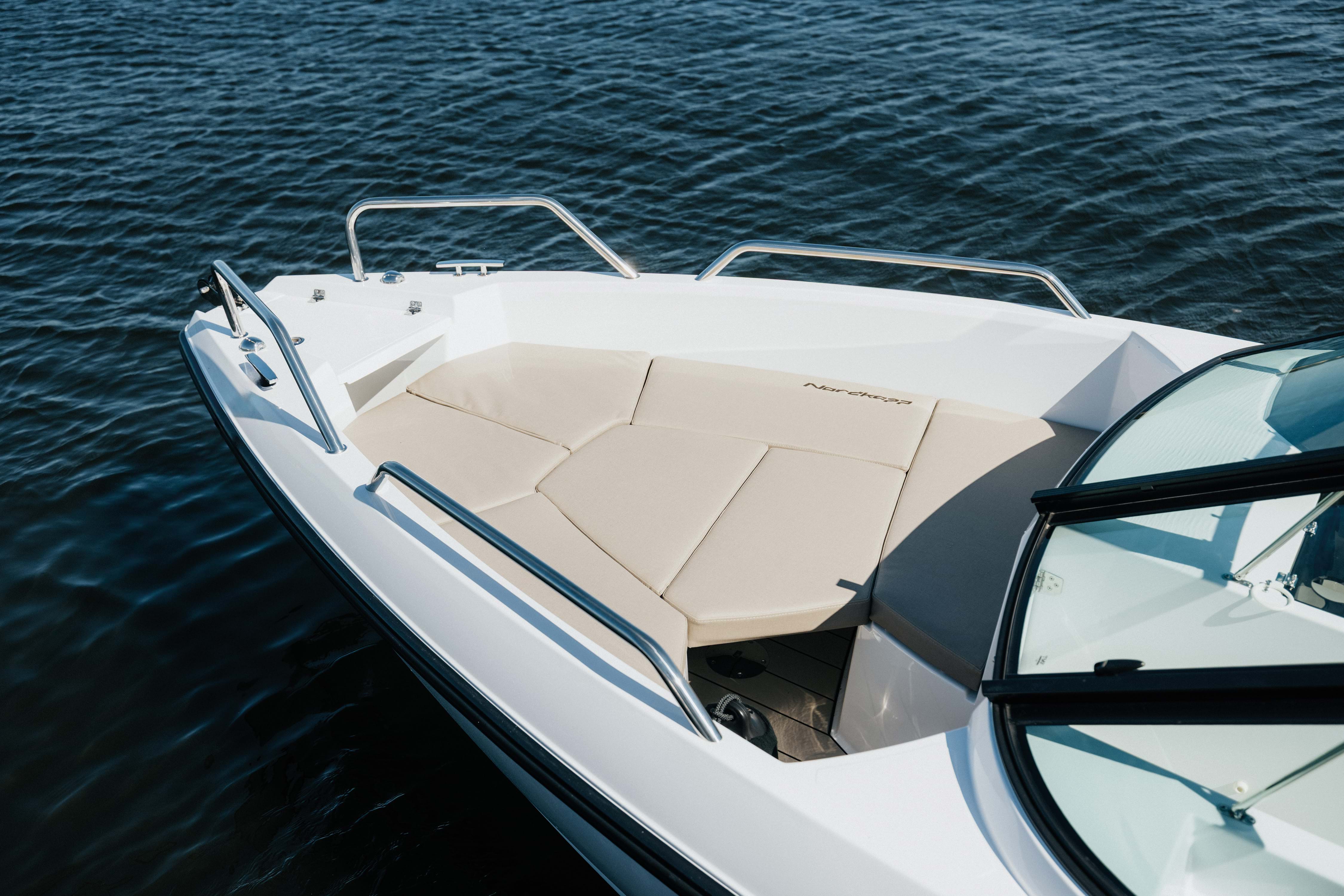The captivating design in combination with the award-winning hull from the Enduro 605 makes the Avant 605 a complete bowrider. The hull is a high performing, comfortable element which ensures a smooth ride. With the features of a bowrider, it quickly becomes a family friend. The large windscreen makes sure everyone aboard stays protected even at high speeds.