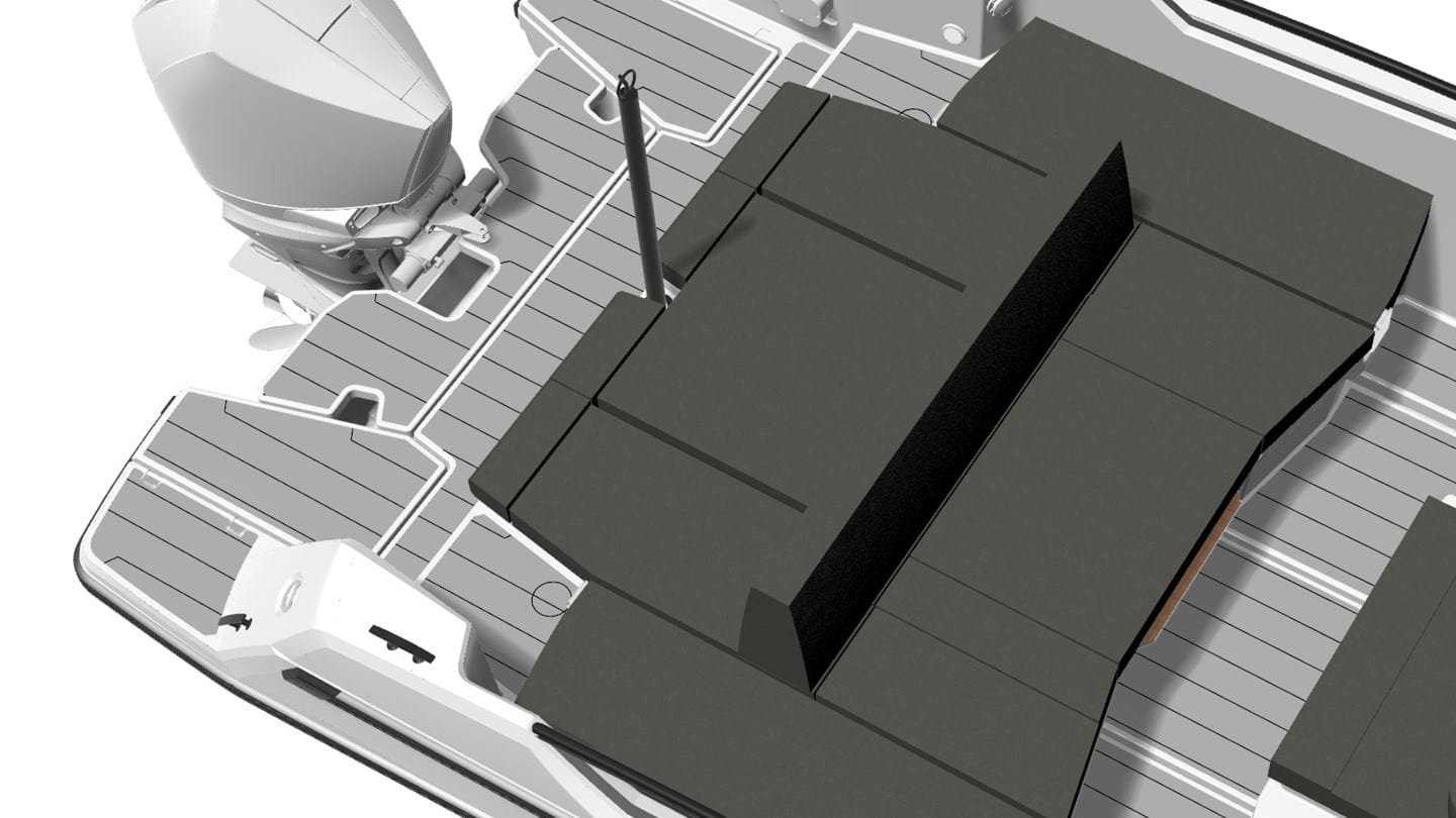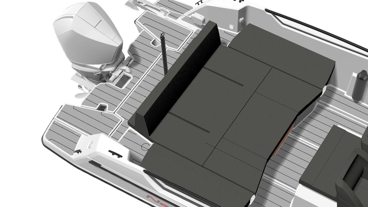 For the full experience, push the aft backrest towards the stern and fold the side backrests outwards. This creates a sunbed over 2 metres deep and 2.60 metres wide — generous proportions, especially on an 8-metre boat.