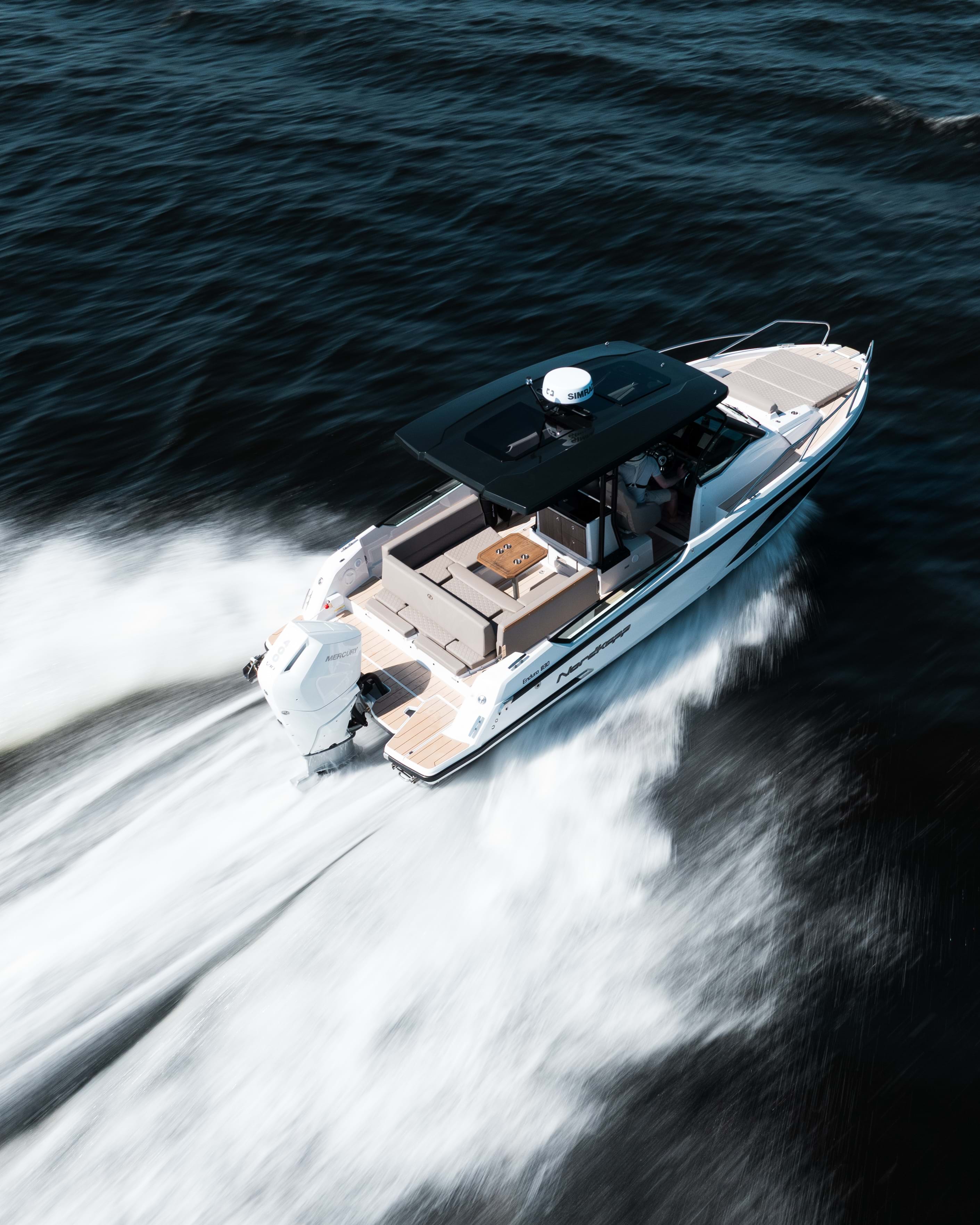 "Nordkapp keeps things on the safe side here, and that's exactly right for a family boat of this kind. It was calm on the test day, but I've driven the other two 830 variants (Noblesse 830 and Coupe 830) in rough conditions and know that they deliver a confident driving experience with good comfort.