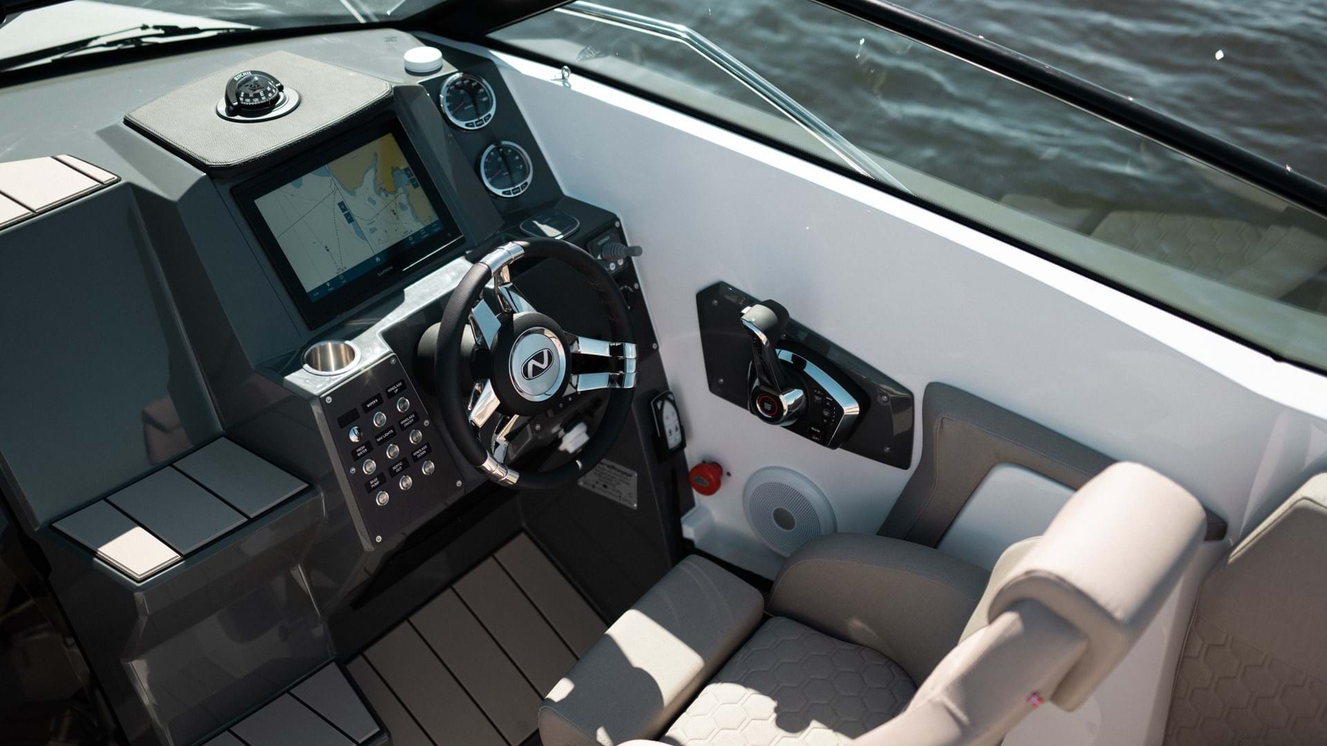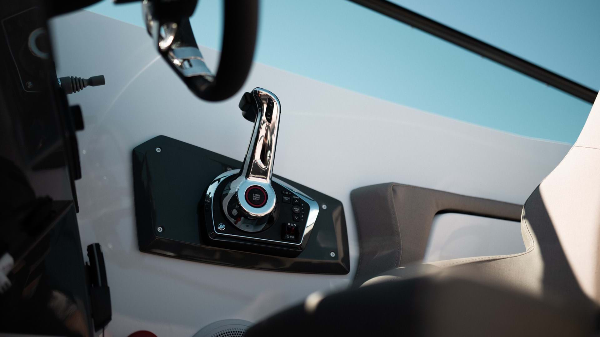 A premium, ergonomic driver's seat adjusts to your comfort. Digital throttle ensures precise control. The carefully crafted V-hull brings confidence behind the wheel.