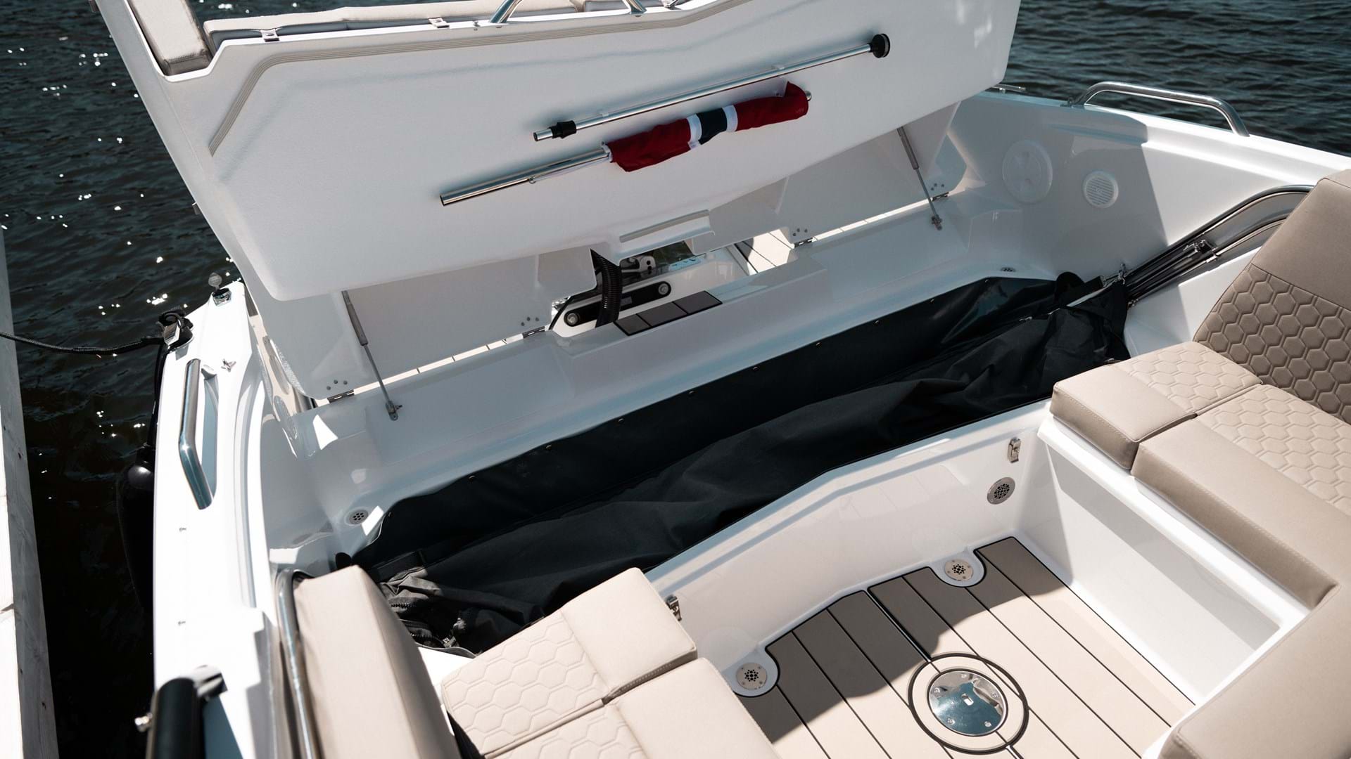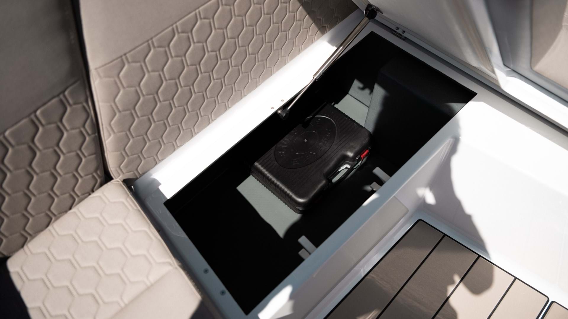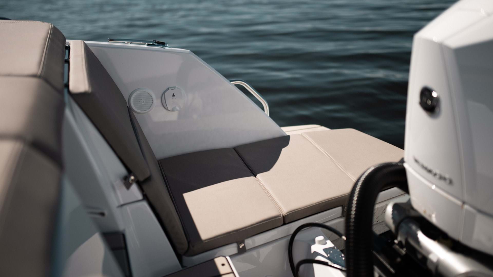 Beach bags. Snacks. Mooring lines. The Noblesse 720 has dedicated spaces for everything – placed so that gear stays tidy and within easy reach. Designed for simple routines and seamless getaways.
