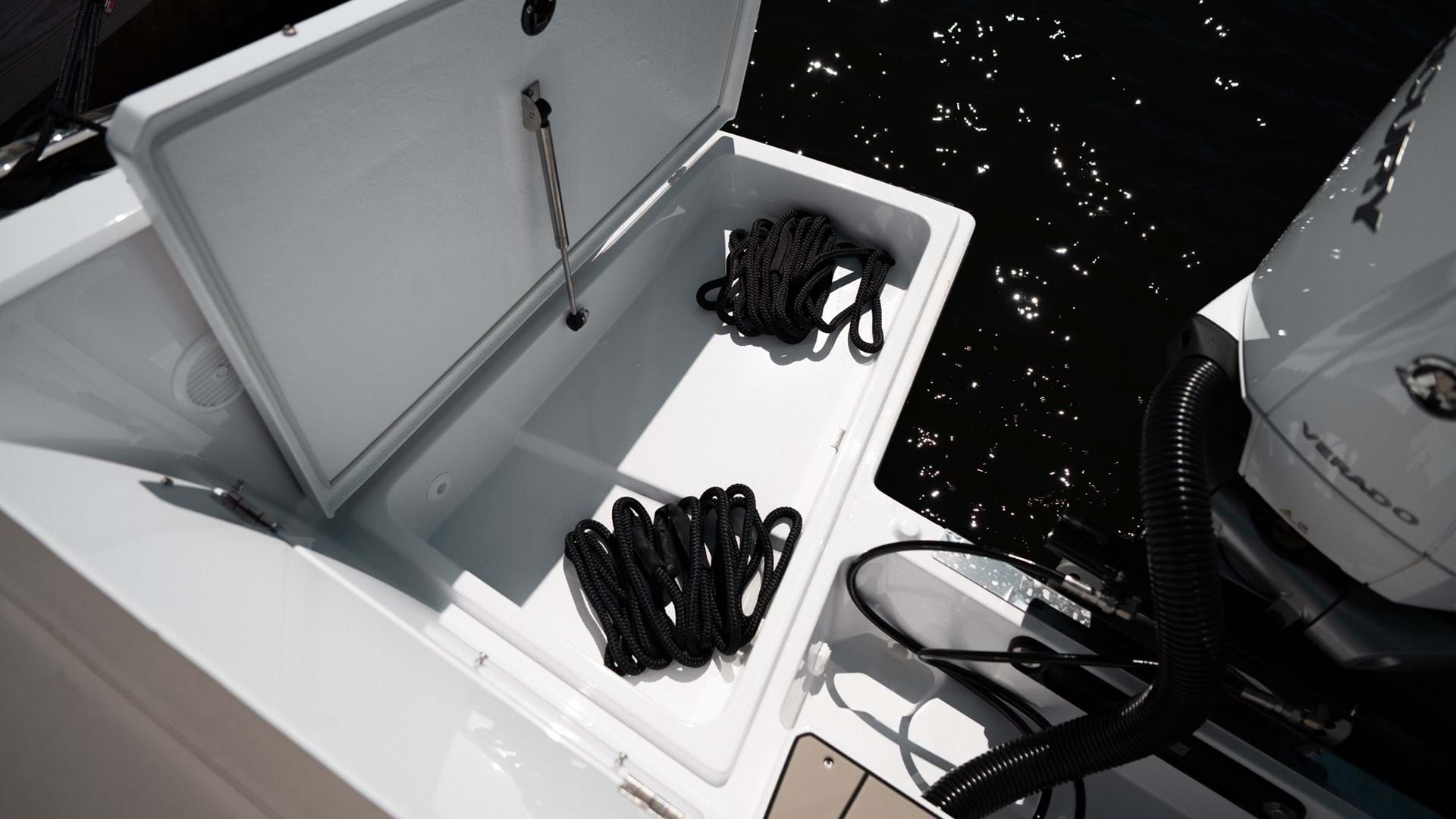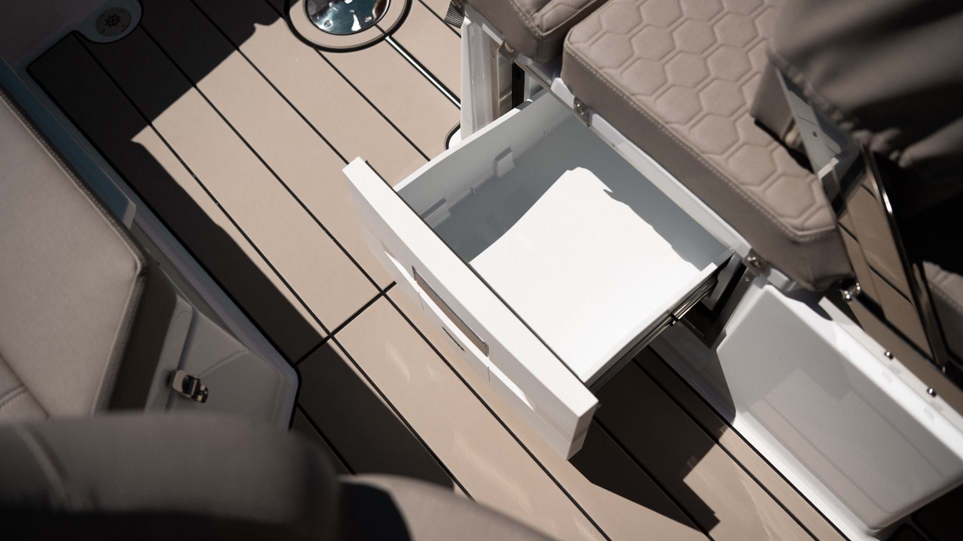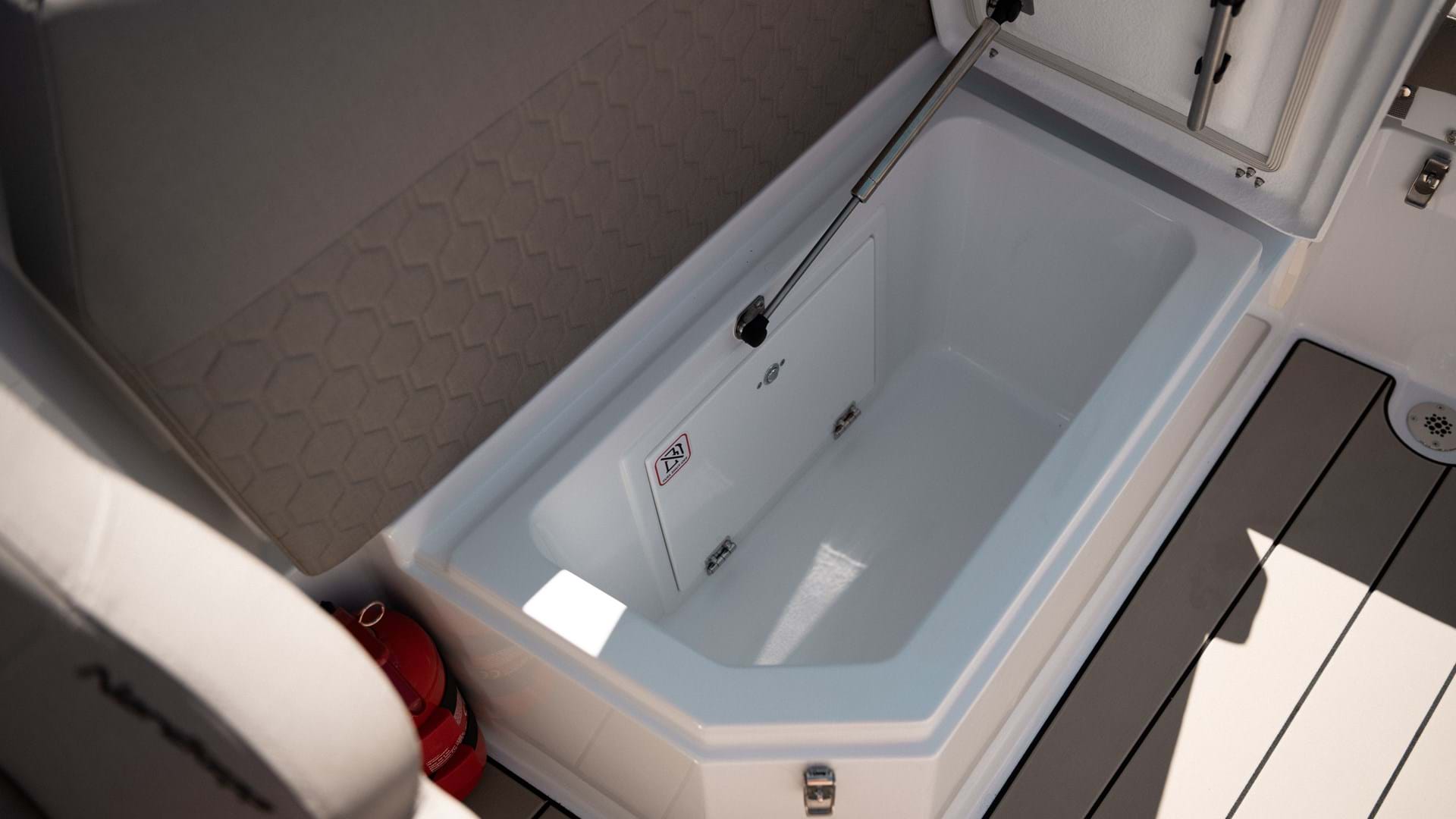 Beach bags. Snacks. Mooring lines. The Noblesse 720 has dedicated spaces for everything – placed so that gear stays tidy and within easy reach. Designed for simple routines and seamless getaways.