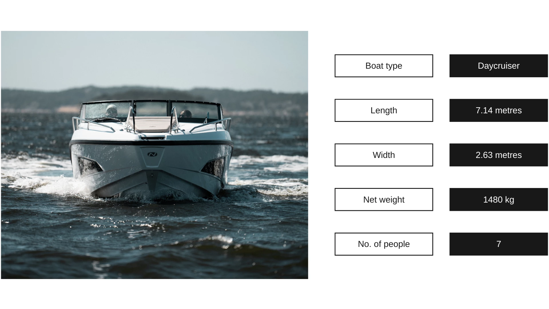 The Noblesse 720 is the result of steady refinement over time. Built for everyday use, with room for quiet moments and the thrills of summer. Contact your local reseller today to get a closer look at this daycruiser (cabin cruiser) boat.