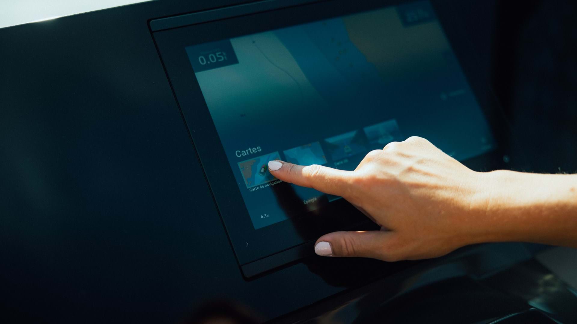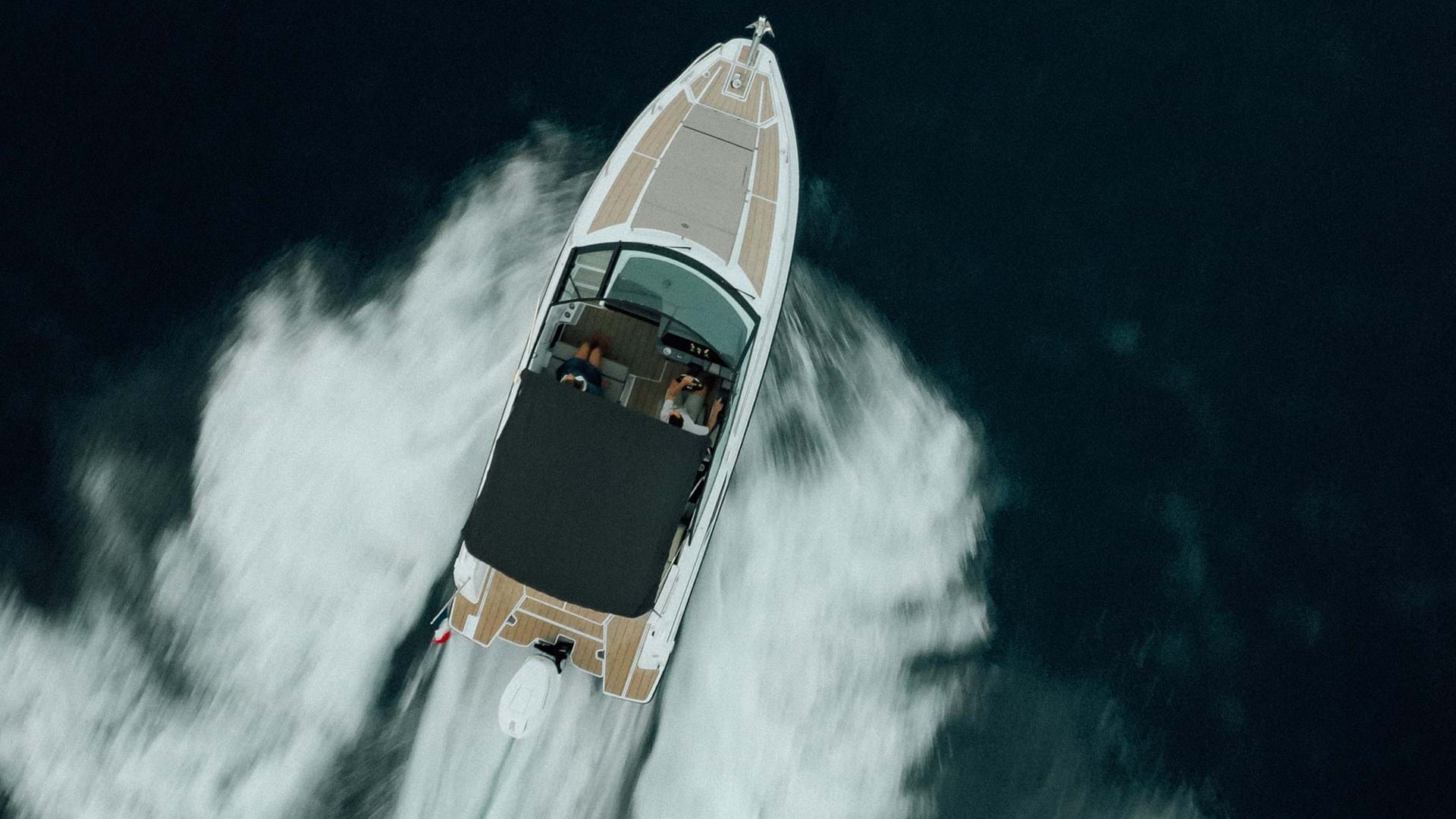 At the helm, you chart your course on one of the 12-inch Garmin displays. The V10 Mercury engine hums to life, delivering refined smoothness and raw power. Manoeuvring out of the marina feels intuitive, thanks to the conventional V-shaped hull and the thrusters at the bow and stern—you quickly forget you're handling an 8,30-metre long and 2.92-metre-wide vessel.