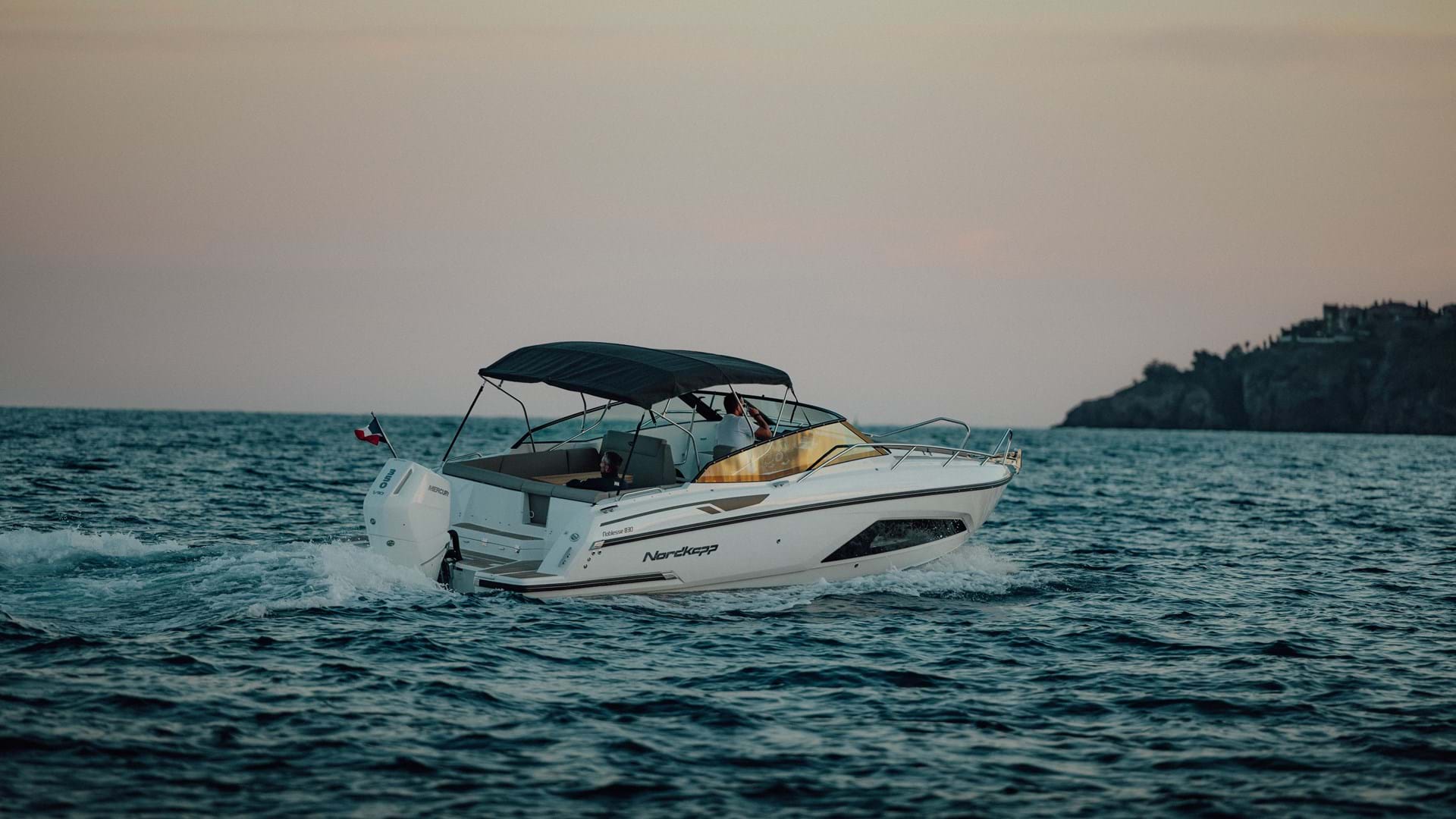 A Nordkapp stands out for its sleek lines and instantly recognisable hull. The unpredictable seas are a common thread that ties boating in northern and southern Europe together. The beautiful yet exposed coastline of the Med can produce large swells in no time. Which the Noblesse 830 handles with ease, thanks to its deep-V hull and traditional bow design that cuts through the waves. With a little trim of the engine, you get a smooth and comfortable ride, no matter the conditions.