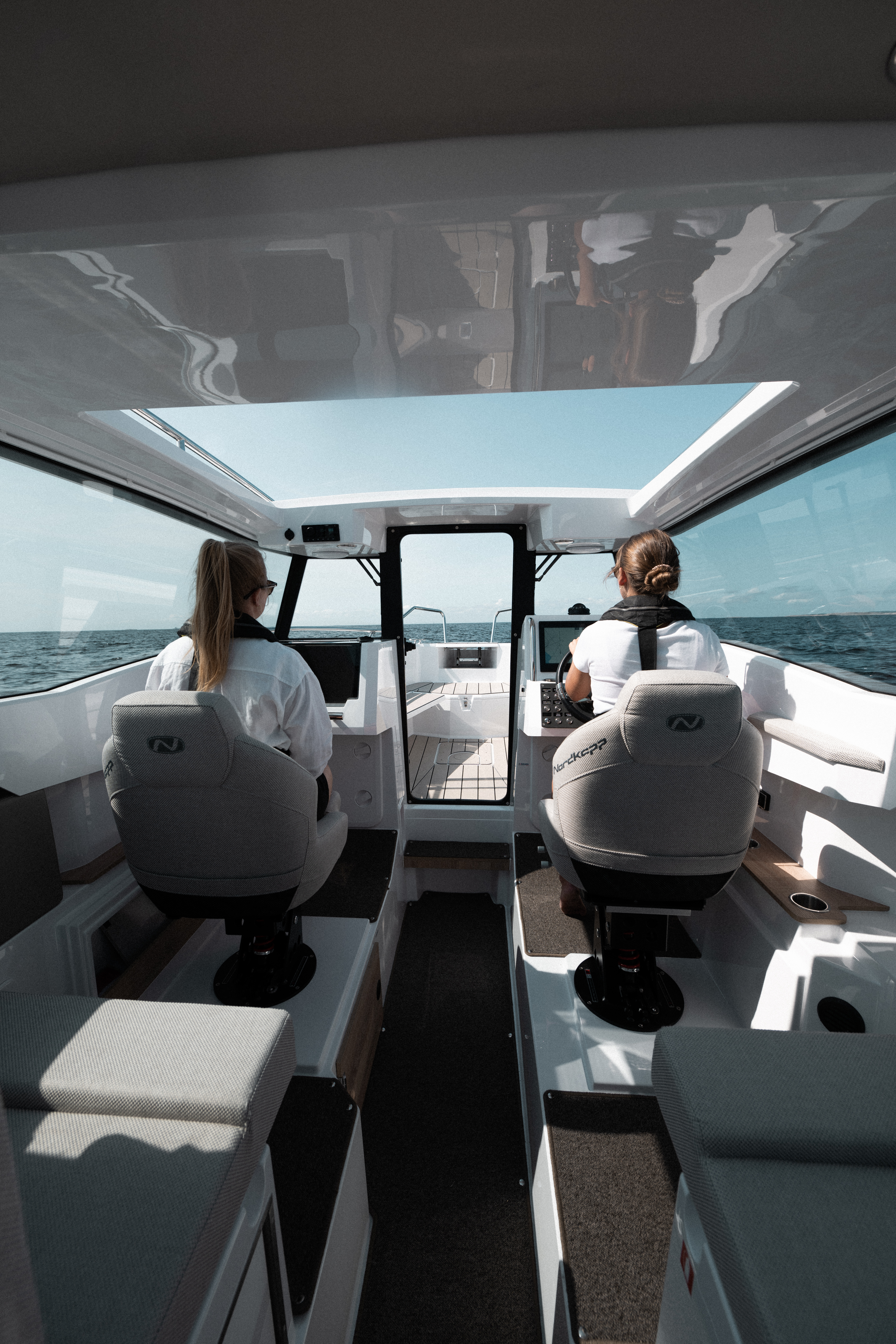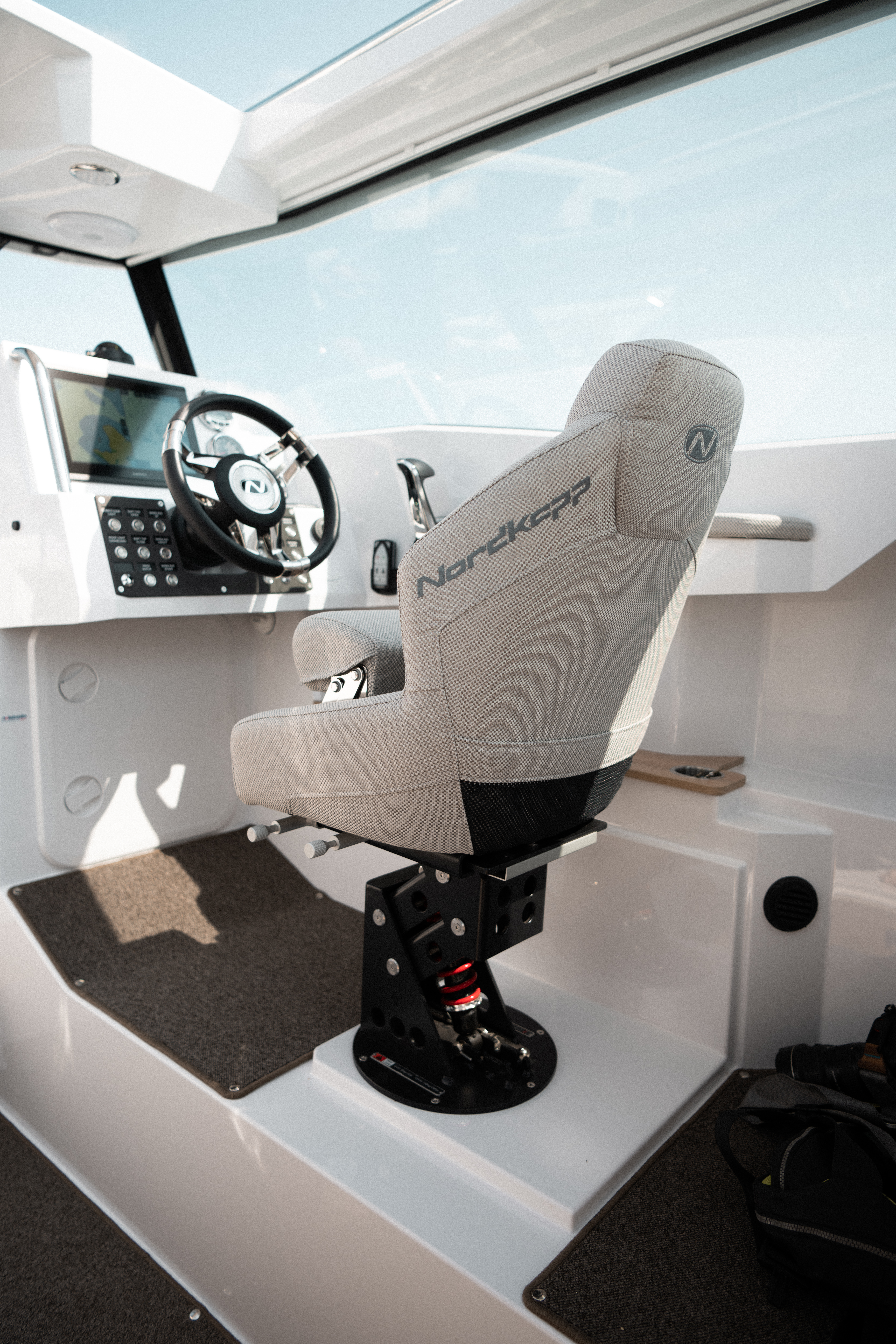 The Nordkapp Coupe 780 is a 7.8-metre wheelhouse boat with a 2.5-metre beam, accommodating up to seven people. It features a spacious cabin that facilitates easy movement throughout the boat, as well as decks with fold-away benches providing ample storage space. You get a commuter that creates seamless transitions between adventures – combining comfort and practicality in an all-season package.