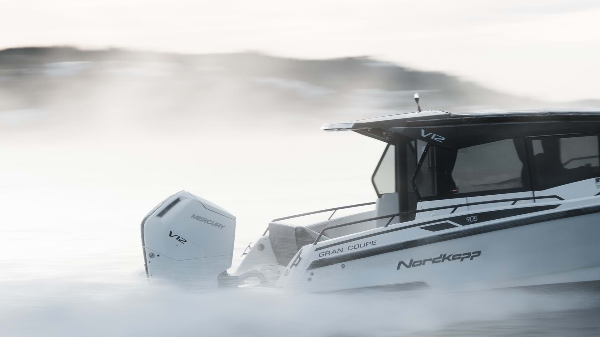 Sportiness and performance are vital areas of focus in all Nordkapp vessels. To achieve this, we meticulously focus on hull design and weight distribution aspects, and having the right engine attached to the stern is paramount to ensure top performance. As you can expect, we push our vessels to the limit in testing and beyond. Few boats have been pushed harder than the wheelhouse Nordkapp Coupe 905 V12, equipped with the Verado V12 engine. Our experience has provided us with a good understanding of how the engine performs over time. Here are our key takeaways: